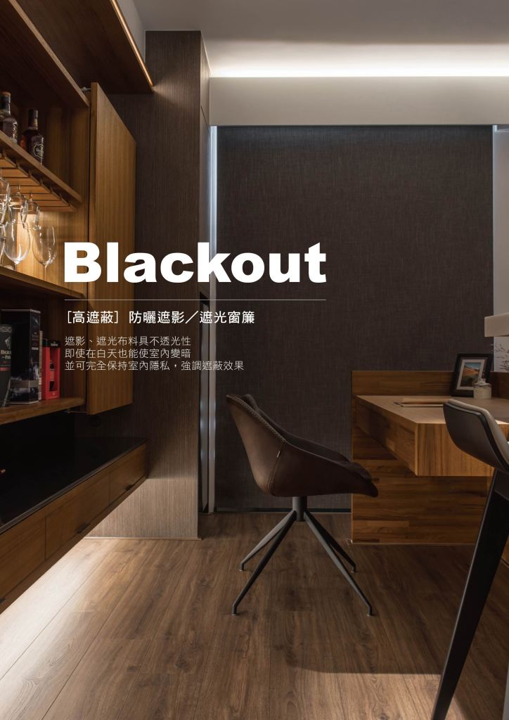遮影、遮光布料具不透光性,即使在白天也能使室內變暗,並可完全保持室內隱私,強調遮蔽效果
