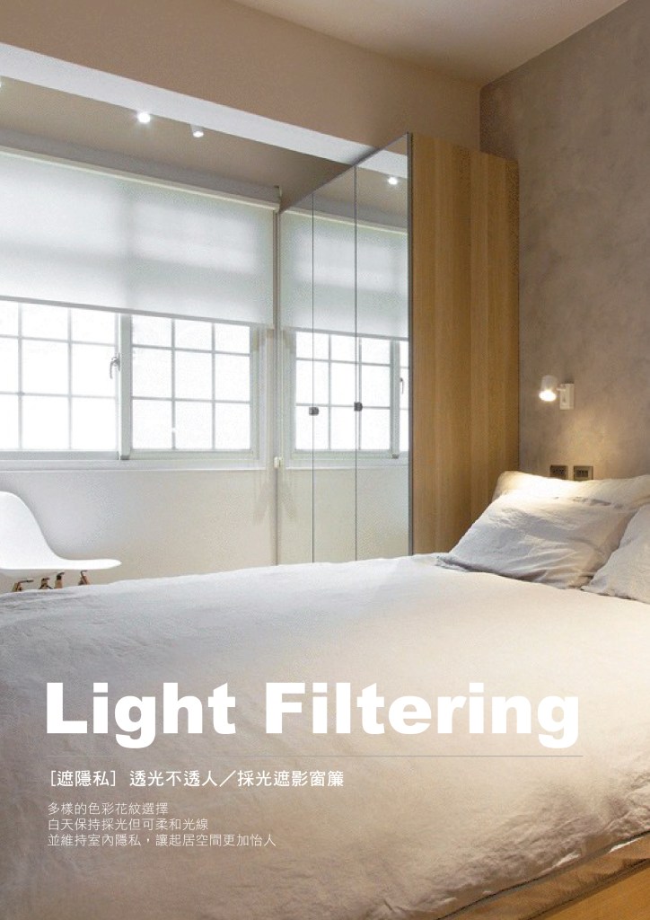 減緩日光照射強度,營造隱約朦朧的穿透感,裝飾效果輕盈柔和,感受窗外景色變化